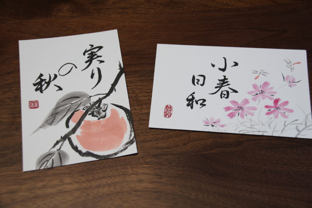 - For shikishi boards and fans, you’ll select the kanji you want to write, practice it, and then complete your final work on the special paper or fan.